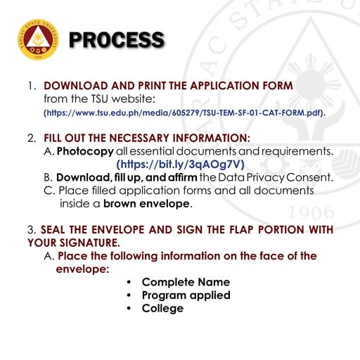 1. 𝗗𝗢𝗪𝗡𝗟𝗢𝗔𝗗 𝗔𝗡𝗗 𝗣𝗥𝗜𝗡𝗧 𝗧𝗛𝗘 𝗔𝗣𝗣𝗟𝗜𝗖𝗔𝗧𝗜𝗢𝗡 𝗙𝗢𝗥𝗠 𝗳𝗿𝗼𝗺 𝘁𝗵𝗲 𝗧𝗦𝗨 𝘄𝗲𝗯𝘀𝗶𝘁𝗲: (/.../605279/TSU-TEM-SF-01-CAT-FORM.pdf).