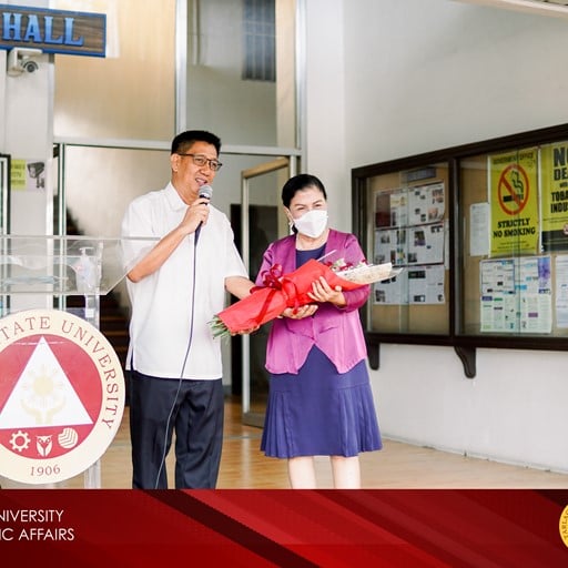 “From my heart, as a token of appreciation for your service, para sa inyo po ma'am, para sa mahal nating presidente. Thank you very much, and I really appreciate Ma'am Myrna for volunteering. I asked her, ‘Ma’am, I’m just new in the service; so, would you mind if I go [to you] anytime kung may problema po ako regarding management and makapag-hingi po ng advise sa’yo?’ And I’m really appreciative po sa sinabi ni ma’am na, ‘Anytime. I’m willing to share what I have and experienced.’ [To] whatever na ma-encounter ko po dito sa TSU na mga challenges, salamat po Ma’am Myrna for that promise,” he said.